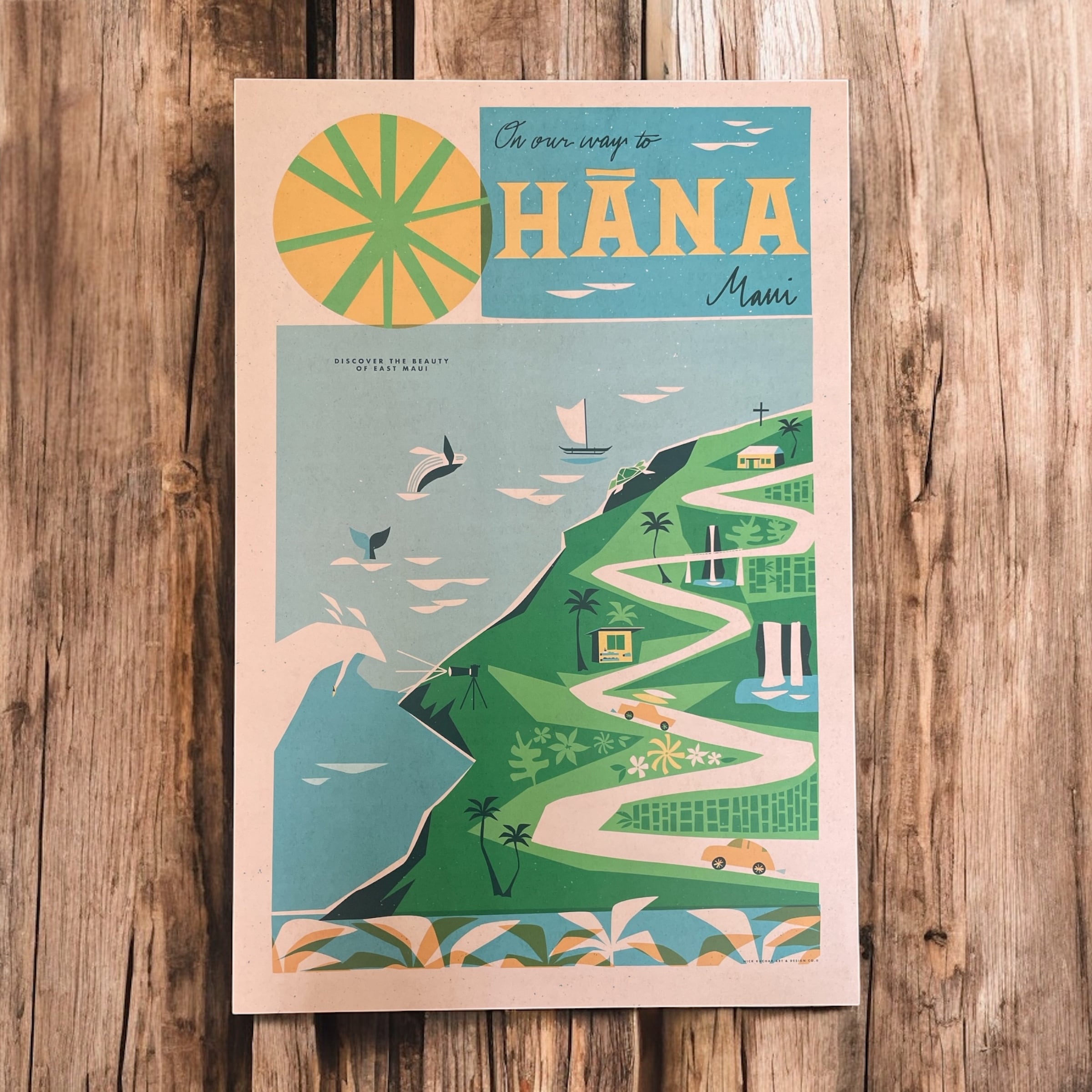 オアフ島を拠点に活動する人気アーティスト≪Nick Kuchar≫のトラベルプリント "Road to Hana"