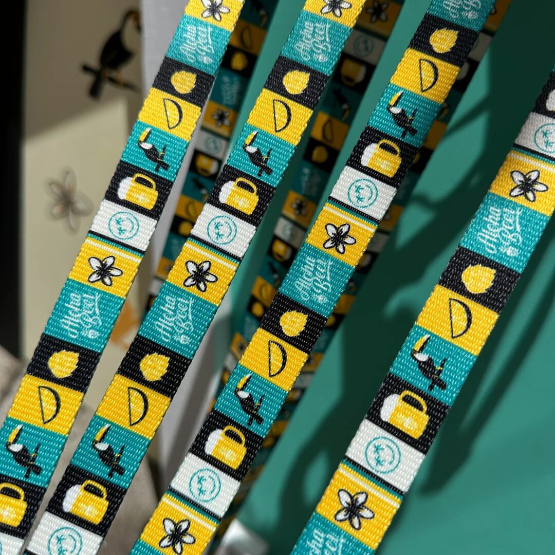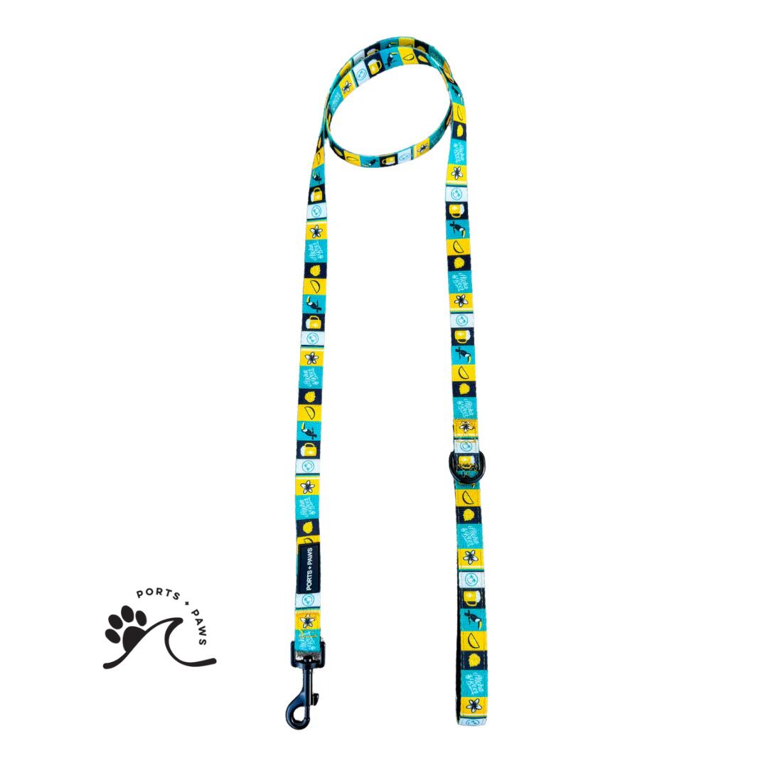 PORTS + PAWS × ALOHA BEER のスペシャルコラボプリントリーシュ。ネオプレン素材のパッド入りハンドルを使用し、持ちやすさも抜群。ハーネス、首輪、うんち袋ホルダー、バンダナ、と合わせてお楽しみください。