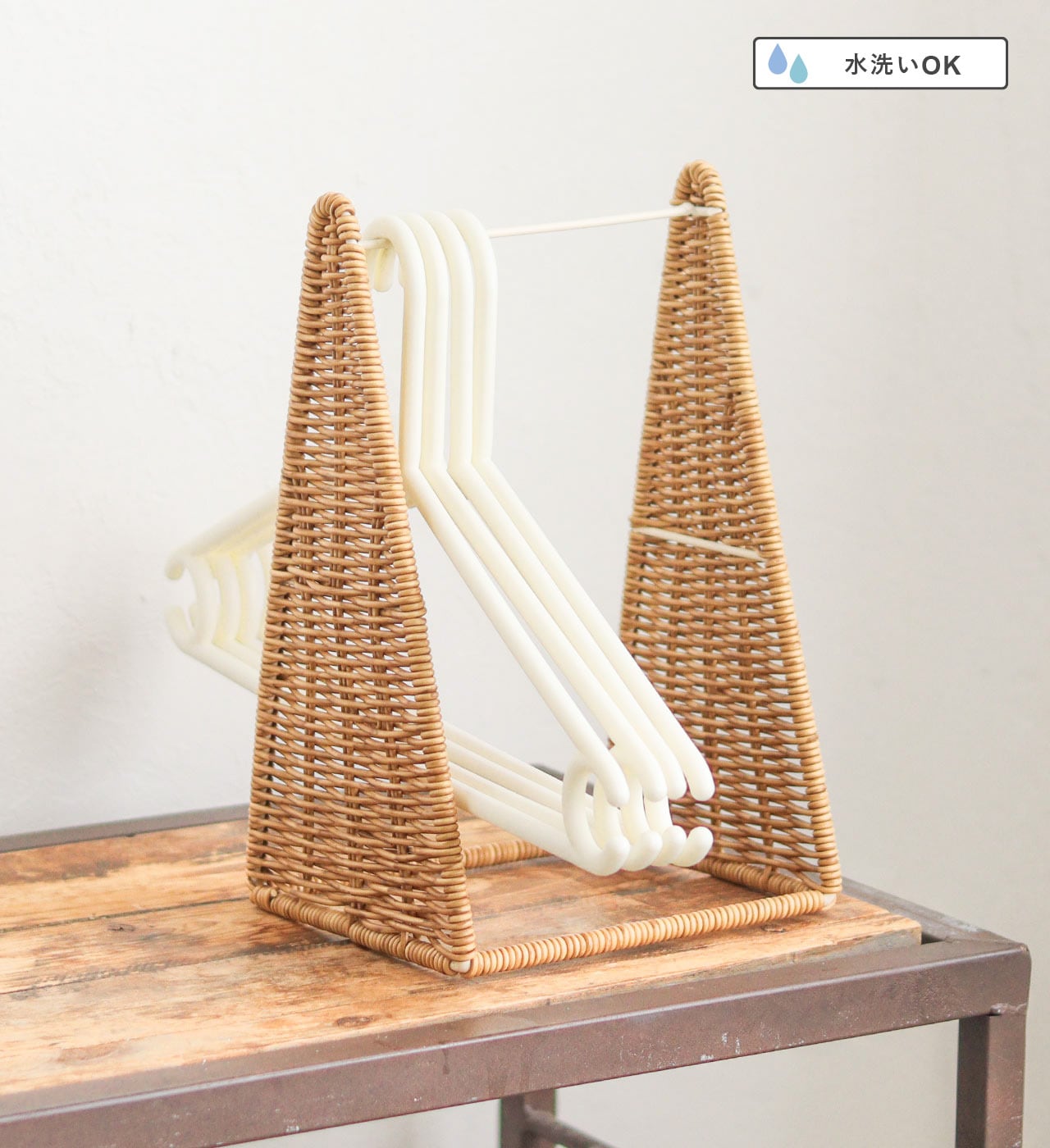 置き場に困りがちなハンガーを、すっきりまとめて収納できるハンガーストッカー。ハンガー同士が絡まりにくく、1本ずつスムーズに取り出せるため、洗濯物を干す作業を快適にサポートします。本体は約300gと軽量設計。ベランダなどへストッカーごと持ち運びができ、洗濯作業を効率よく行えます。素材には水に強いポリプロピレンとポリエチレンチューブを使用し、手作業で丁寧に編み上げられているため、洗面所など水回りでも安心してお使いいただけます。