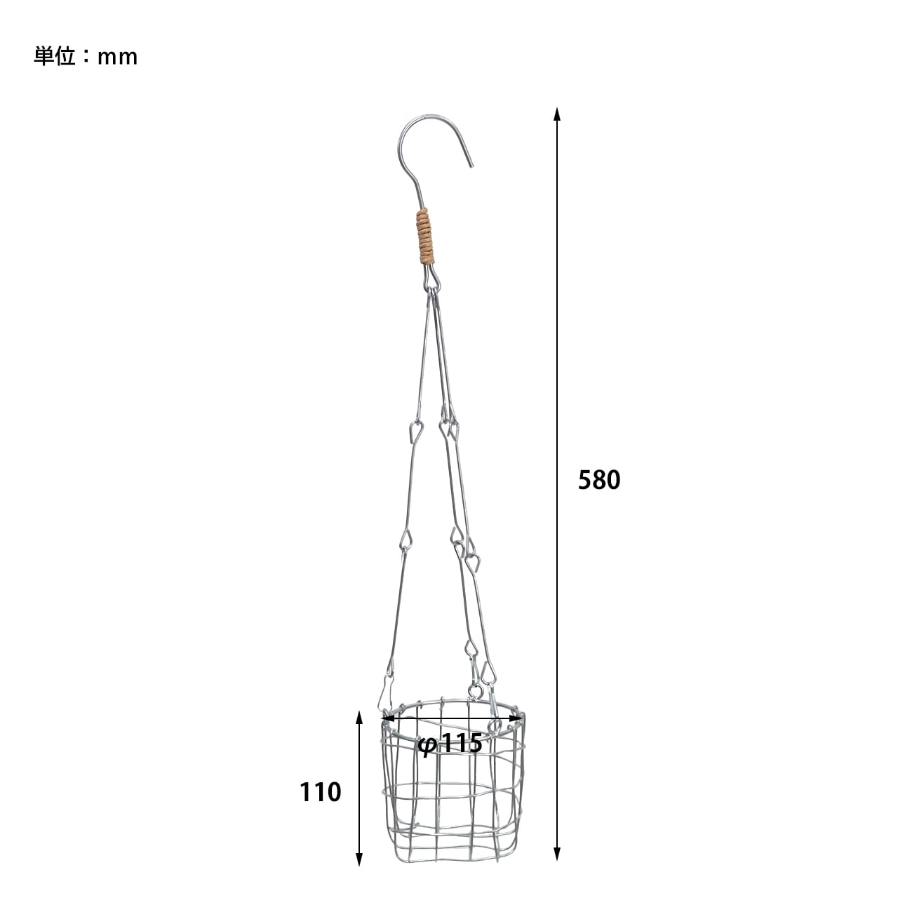 ■サイズ:約 φ115×h110 mm / 全長 h580 重量: 約 180g ・対応鉢サイズ:約3号まで対応(φ100mm