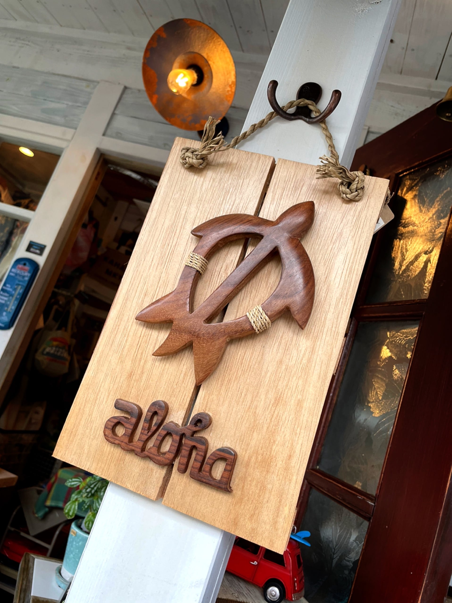 クラシックな雰囲気のウッドサイン。壁にかけるだけでグッとハワイアンな雰囲気に。ハワイアンテイストがお好きな方や、リゾート感満載のインテリアにこだわりたい方におすすめです。 ■サイズ:約H300×W190×D22mm(ロープ除く) ■素材:ウッド ■生産地:インドネシア <注意事項> ご覧になるPCの環境によっては実物と色味が若干違ってみえる場合があります。