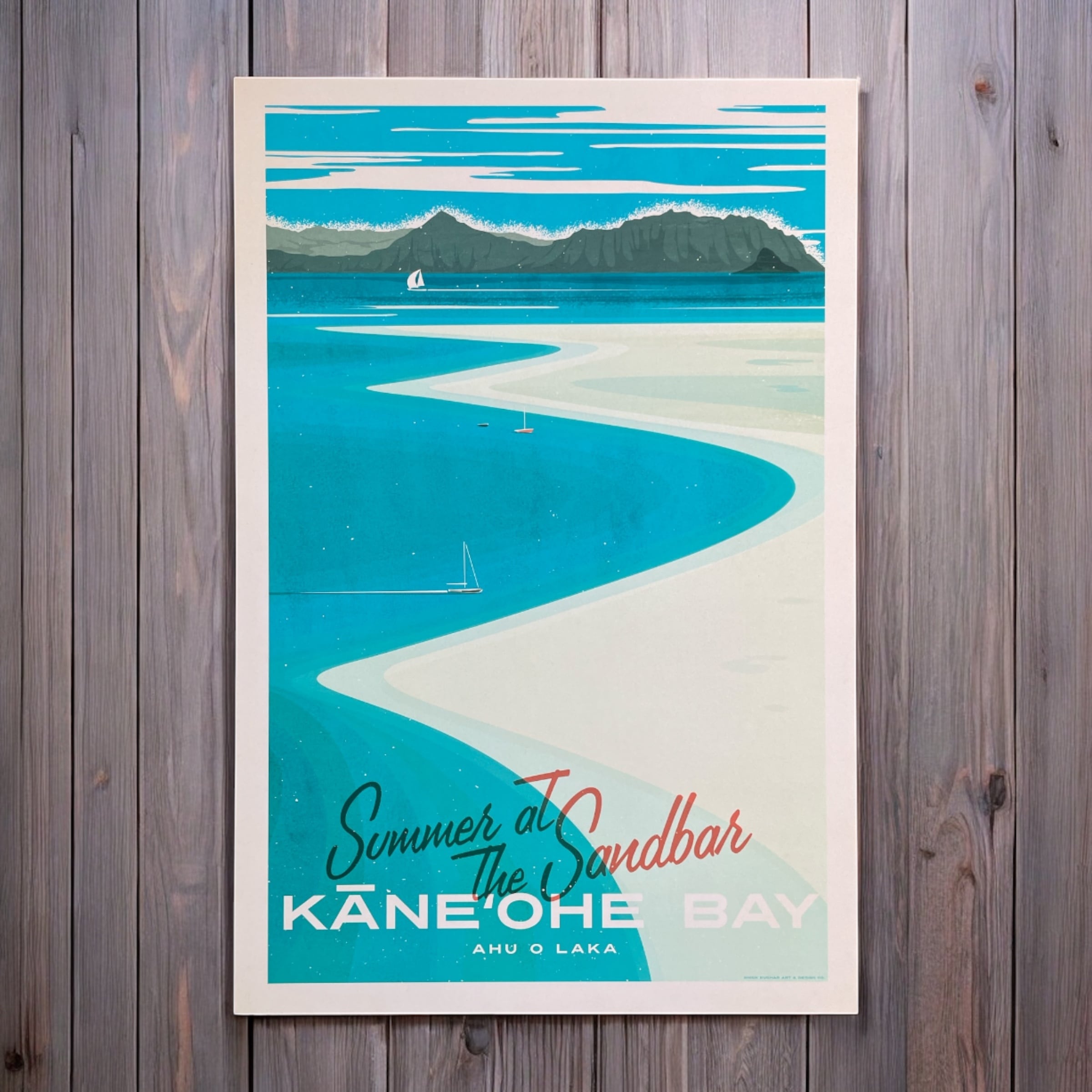 オアフ島を拠点に活動する人気アーティスト≪Nick Kuchar≫のトラベルプリント "Kaneohe Bay Sandbar"