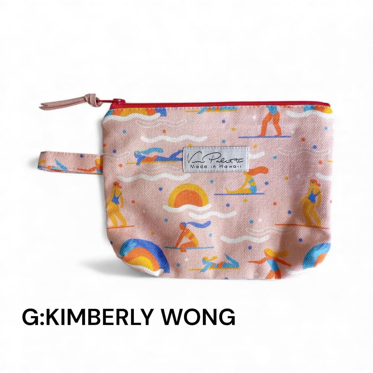ハワイで地元の職人さんが一つ一つ丁寧に、心を込めて縫製をしたポーチです。表の厚手キャンバス生地は、人気アーティストたちとコラボレーションをして作られたデザインで、市販されていないカスタムプリントです。裏地の生地やパーツは、地元ハワイの商店から買い付けられたものです。