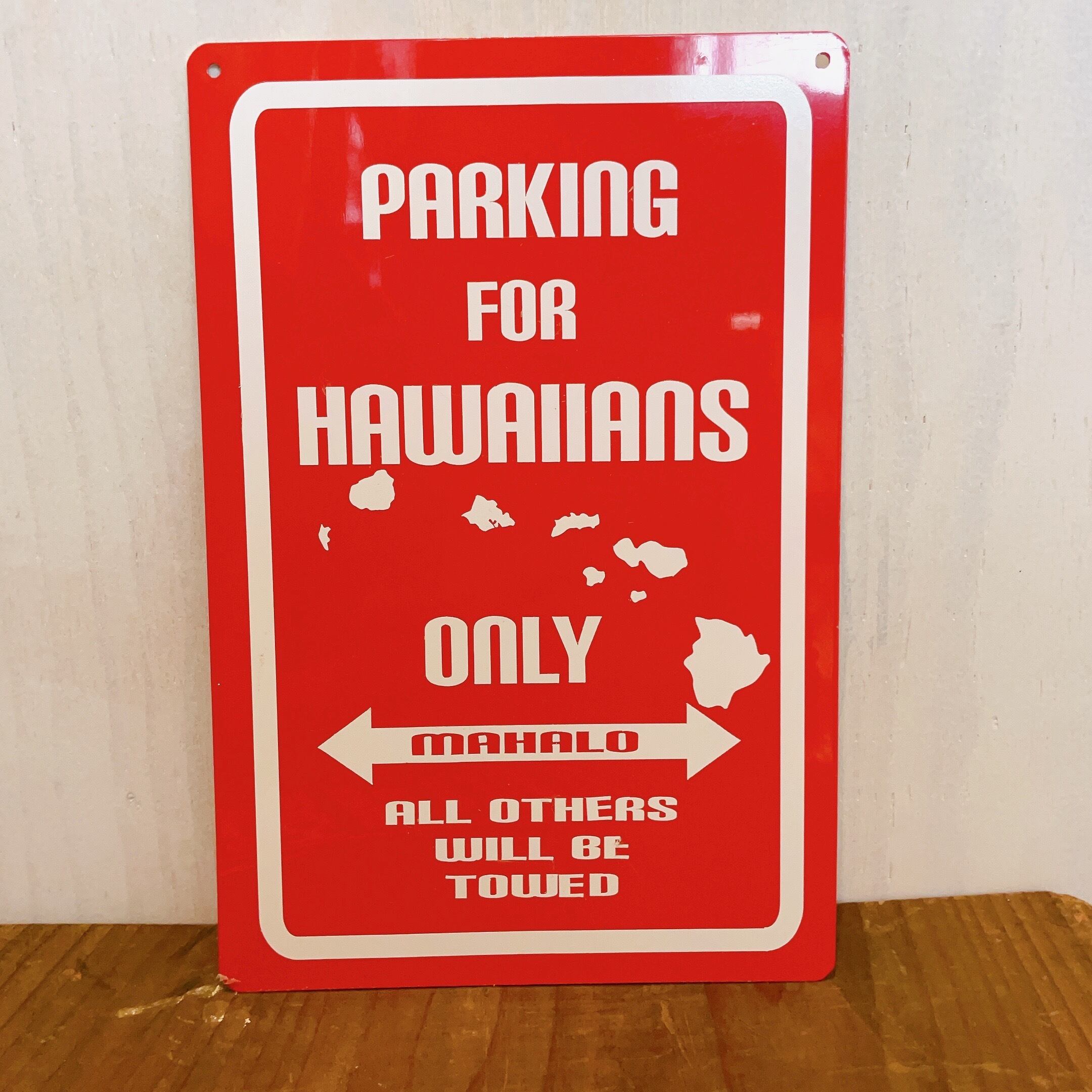 Hula Dancer Parking ONLYやParking for Hawaiians onlyなど様々なユニークなデザインがあります。掛けやすいように上の角に2カ所穴が開いているので取り付けも簡単です。